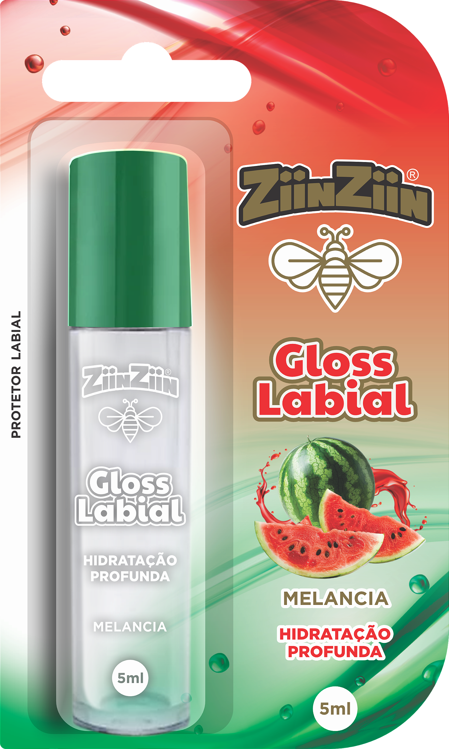 Gloss Labial ZiinZiin SABOR MELANCIA , que permite uma aplicação prática, higiênica e uniforme, além de