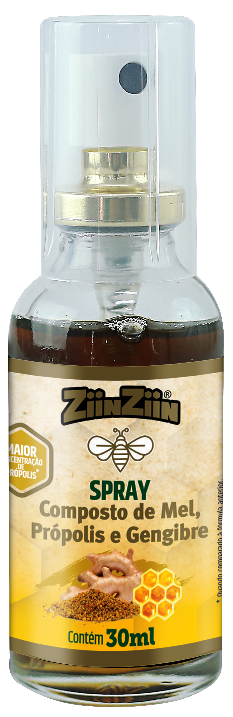 O spray de mel própolis e Gengibre ZiinZiin, contém vitaminas C, B6 e com ação bactericida, o mesmo vai além de ajudar a tratar inflamações da garganta e auxilia nas defesas do organismo, indicado para dor e inflamação. O Spray Composto de Mel, Própolis e Gengibre ZiinZiin é indicado para uso de infecções, trazendo alívio para a tosse.
